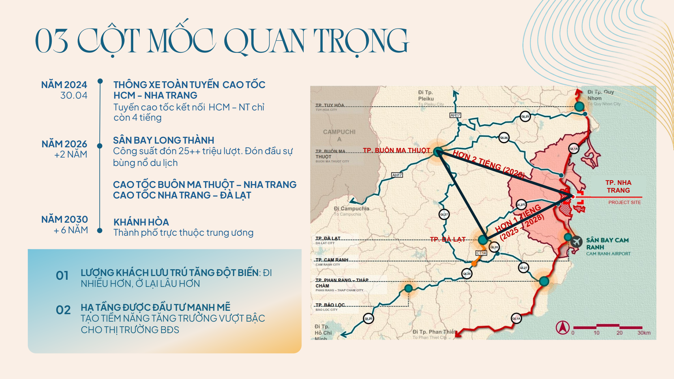 Cụ thể, vị trí của dự án có phía Đông giáp biển, phía Tây là tuyến đường Phạm Văn Đồng, khu nghỉ dưỡng Amiana Resort ở phía Nam và phía Bắc là mũi. Tọa độ này nằm tại tam giác vàng chiến lược Trần Phú – Bãi Tiên – Bắc Vân Phong, đón đầu khu kinh tế Bắc Vân Phong.